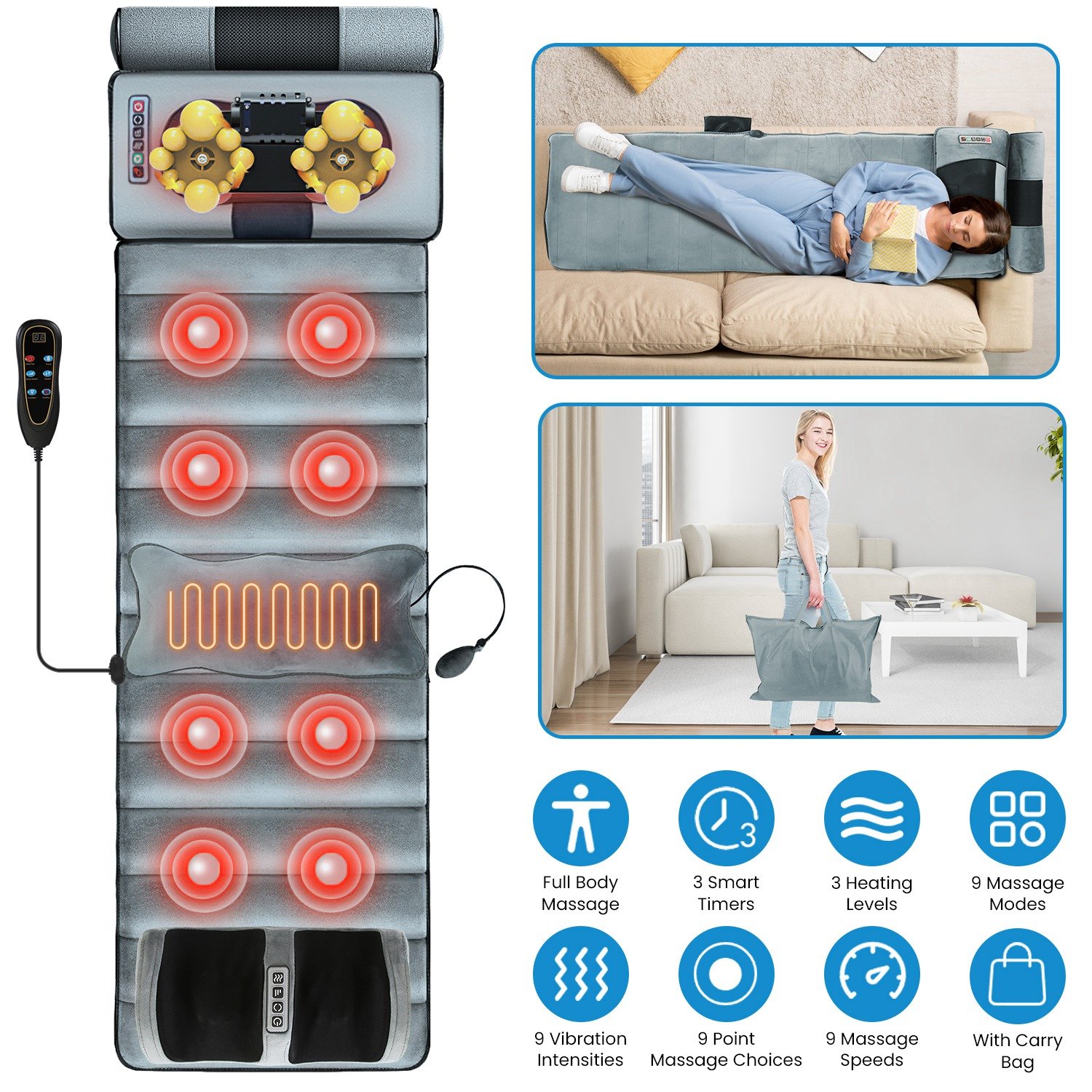 Full Body Electric Massage Mat Heating Vibration Massage Pad Cushion Back Massage Mattress Chair Pad with Neck massage Foot massage Head Pillow Inflat
